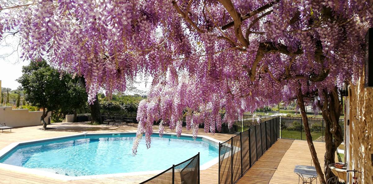 Guests enjoy the mild evening, the calm of the garden and a peaceful and intimate setting, with the spectacle of magnificent sunsets over the Ardèche mountains.