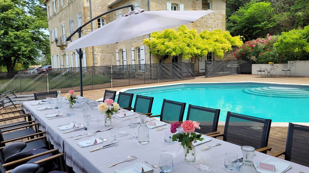 In a relaxed and pleasant atmosphere, depending on the season, dinner can be served in the dining room of the chateau or, from the start of the good weather, the tables are set up on the terrace, by the pool.